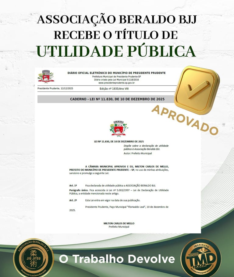 Hoje, sua missão transcende o tatame. Há mais de 5 anos, ele se dedica a ensinar Jiu-Jitsu para crianças e adolescentes, transformando vidas através do seu projeto social e da Associação Beraldo BJJ. A academia, em parceria com a TMD House do professor Márcio de Deus, orgulhosamente faz parte da InFight, uma das maiores e mais respeitadas equipes de Jiu-Jitsu do mundo.